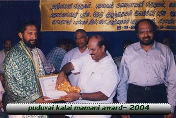 Puduvai Kalaimamani –2004 by the Department of Art and Culture, Government of Pondicherry